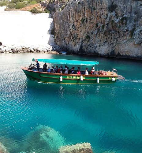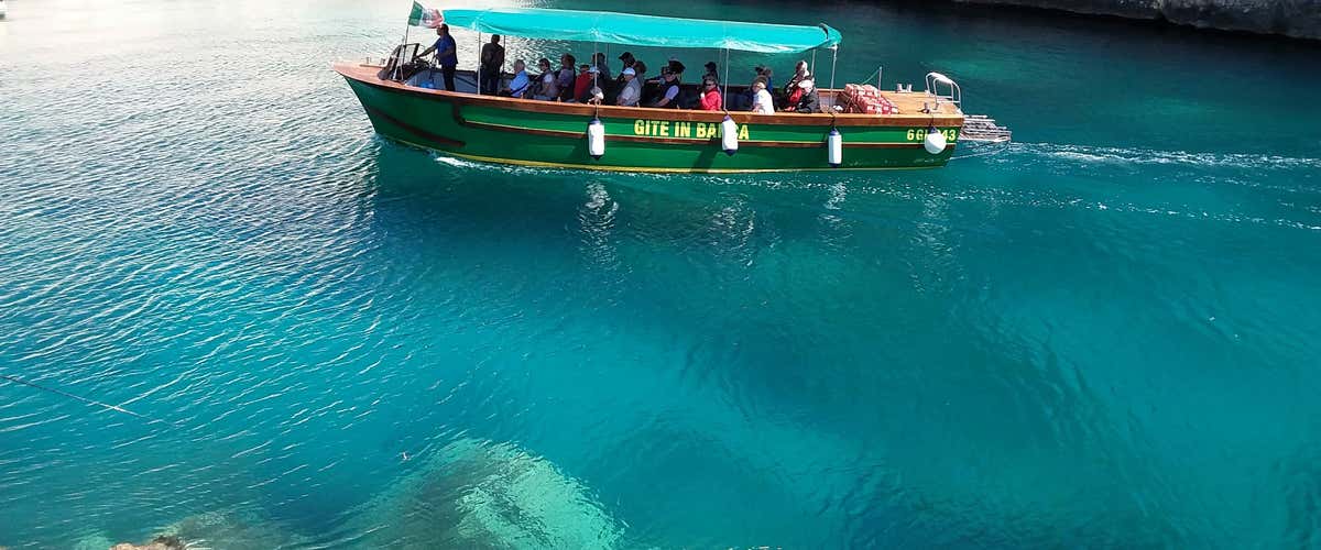 Navigheremo all'interno della baia per ammirare da vicino le spettacolari Grotta Palombara e Grotta Rotundella, entrambe scavate nella roccia calcarea nel corso dei millenni. Poi ci dirigeremo verso Grotta Azzurra, dove l'acqua assume tonalità blu o verdi, a seconda della quantità di luce che filtra dall'apertura, e Grotta Zinzulusa, per osservare le caratteristiche formazioni che pendono dal soffitto.
