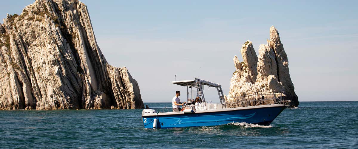 - Sali a bordo di un motoscafo per andare alla scoperta della Riviera del Conero