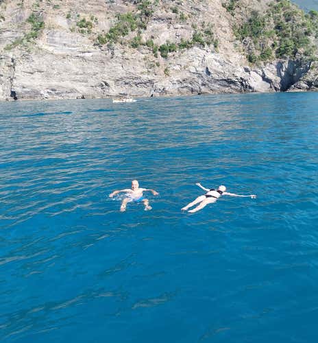 Riprenderemo quindi la navigazione verso Monterosso. Qui potremo tuffarci nelle acque cristalline in una sosta bagno di 45 minuti, durante la quale potremo usufruire dell'attrezzatura da snorkeling messa a disposizione dall'organizzatore. Le soste bagno in totale saranno almeno due, entrambe nel Parco delle Cinque Terre.