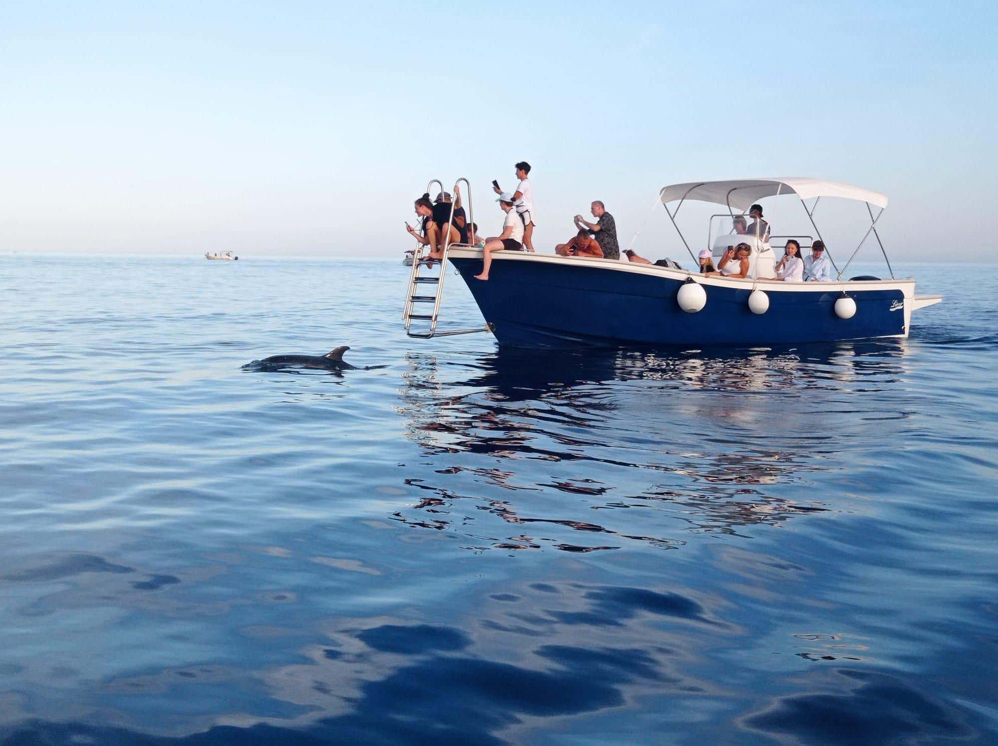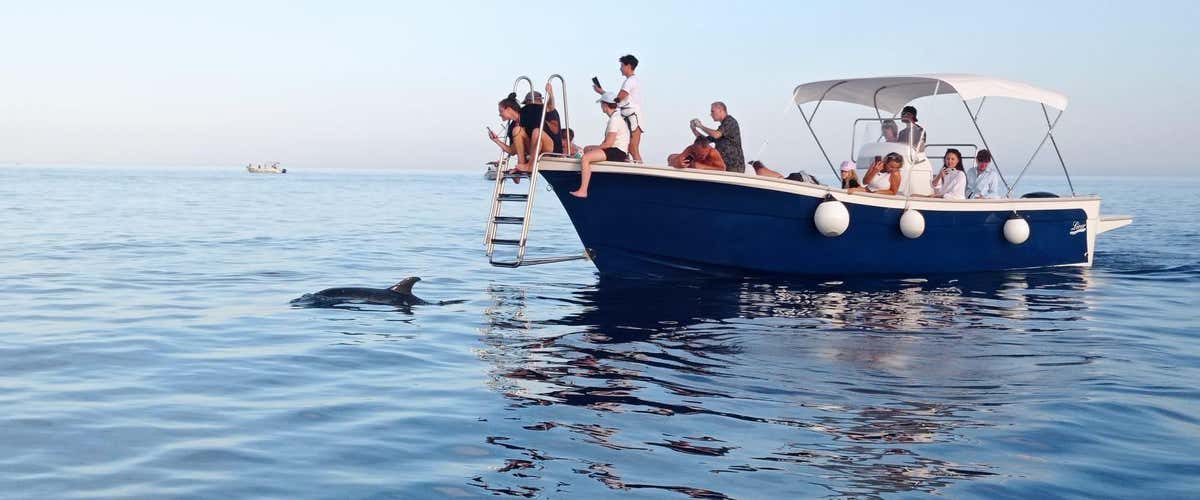 Insieme a uno skipper, andrai alla ricerca dei delfini in mare aperto, per poi goderti un aperitivo mentre il sole si tuffa all'orizzonte!