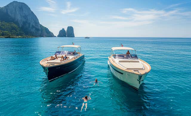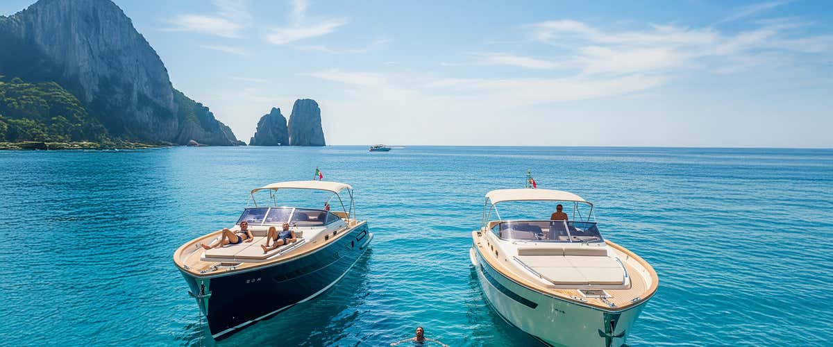 Riprenderemo il giro passando davanti alla Grotta dell'Arsenale, alla Grotta dei Marinai e ai leggendari Faraglioni. La navigazione continuerà verso Villa Malaparte, la Grotta Bianca, la Grotta Meravigliosa, la Grotta Rossa, il panoramico Salto di Tiberio e la Statua dello Scugnizzo. Durante il percorso, faremo altri brevi stop bagno di pochi minuti per goderci ogni sfumatura dell'acqua caprese.