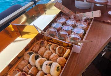 Qui oppure a Cala Ventroso getteremo l'ancora per una sosta di circa 45 minuti. Sarà il momento di tuffarci per una nuotata o fare snorkeling con le maschere fornite, mentre a bordo ci verranno serviti un brunch e un aperitivo con prodotti tipici locali. Avremo a disposizione un free bar completo con acqua, birra, prosecco, spritz e limoncello per brindare.