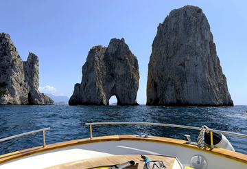 Inizieremo la navigazione ammirando la piramide di case colorate che rende Positano unica al mondo, per poi fare rotta verso Capri. La nostra prima tappa sarà la celebre Grotta Azzurra, dove l'acqua brilla di una luce magica; chi vorrà potrà salire sulle piccole barche a remi per visitarne l'interno (€18,00 a persona, da pagare in loco).