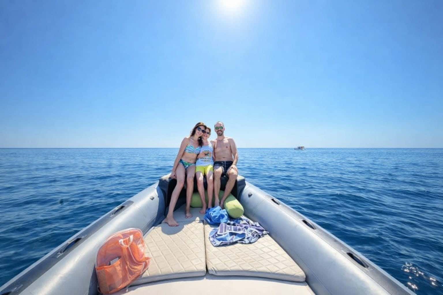 L'imbarcazione utilizzata è un gommone di lunghezza compresa tra i 6 e i 12 metri, dotato di tendalino, doccetta e scaletta di risalita. A bordo si sta senza calzature.