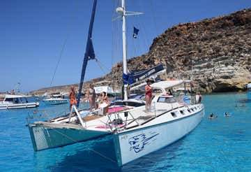 - Goditi un tour di 3 ore in catamarano al tramonto all'isola di Lampedusa