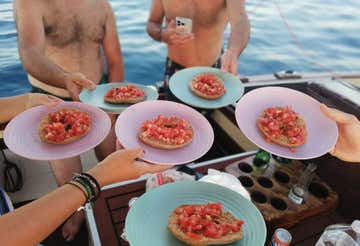 3 ore e mezza con un simpatico skipper e un aperitivo salentino con frisa e insalata di polpo da leccarsi i baffi (anche se non ce li hai)!