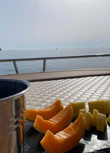 Riprenderemo poi la navigazione e passeremo davanti al Santuario di Santa Maria dell'Isola, che sorge su un promontorio. Per accompagnare l'ultimo tratto di navigazione fino al rientro in porto previsto per le 12.30, lo skipper accenderà anche la musica a bordo.