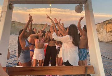 Vivi un'escursione in barca di 3 ore al tramonto in compagnia dei tuoi amici o di nuovi compagni di viaggio, gusta un aperitivo e lasciati andare sulle note della tua canzone preferita sulla discoteca galleggiante più divertente di Ponza!