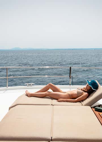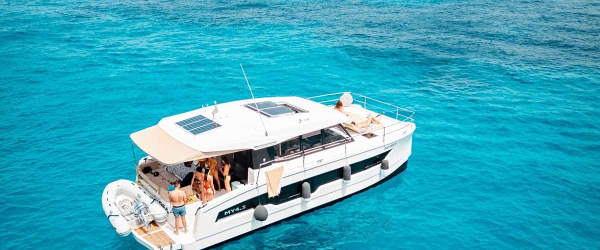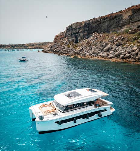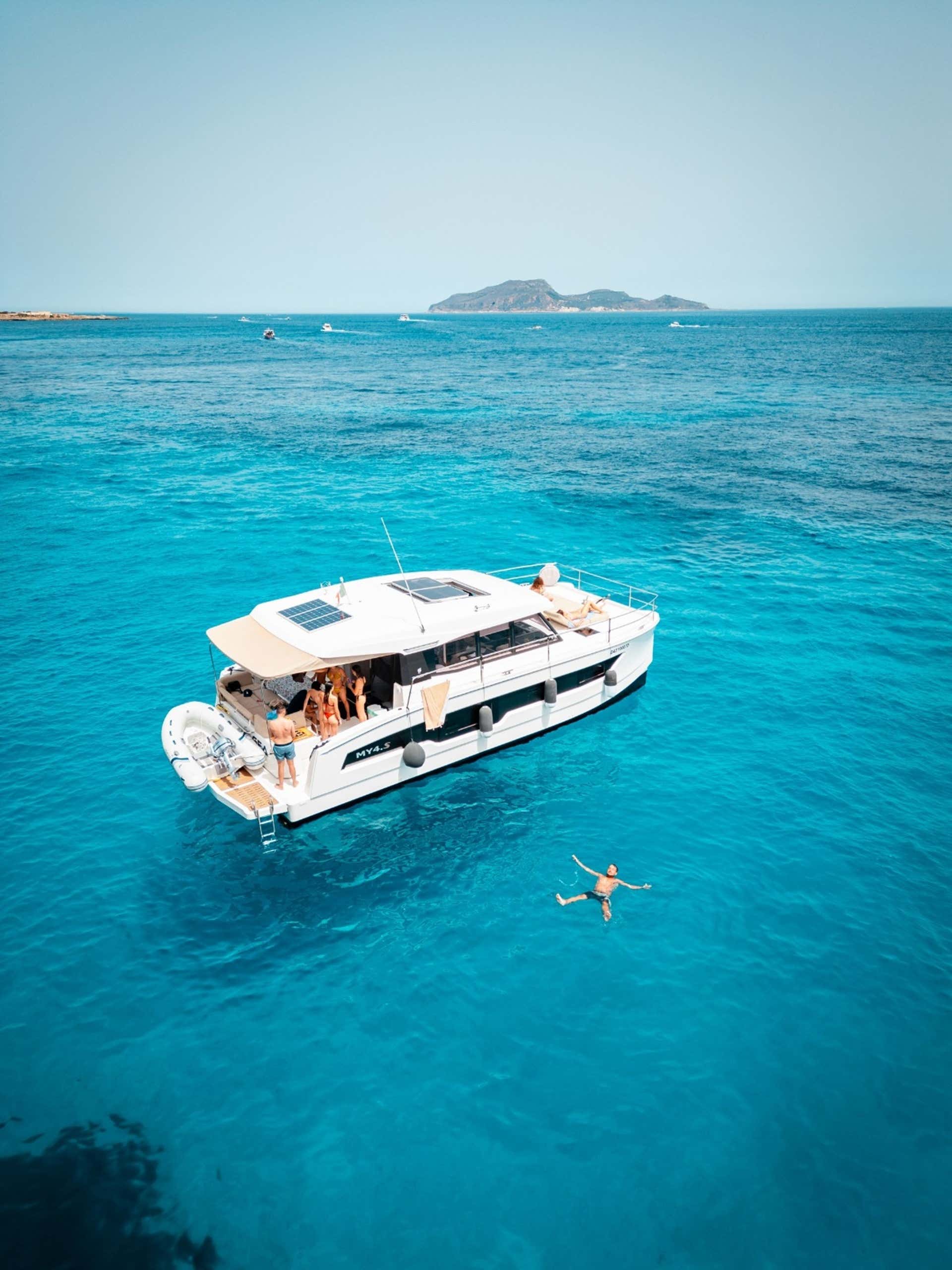 L'imbarcazione è un catamarano dotato di tendalino, doccetta di acqua dolce e stereo Bluetooth, ideale per chi cerca una navigazione rilassata e confortevole. A bordo si rimane a piedi scalzi. A bordo non sono ammessi cani.