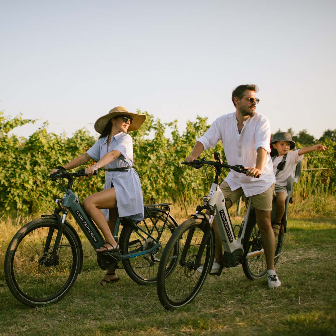 Al nostro arrivo riceveremo l'e-bike a noleggio, e tutte le informazioni utili per lo svolgimento di un'esperienza senza pensieri. Saremo dunque pronti per montare in sella e pedalare alla scoperta del territorio: ci avventureremo nello scenario collinare tra Verona e il Lago di Garda, costellato di vigneti e borghi. La zona presenta percorsi ciclabili adatti a ogni livello di esperienza, a partire dalla Ciclovia del Mincio. Il noleggio e-bike ha durata 2 ore circa.