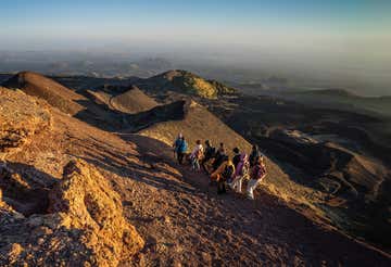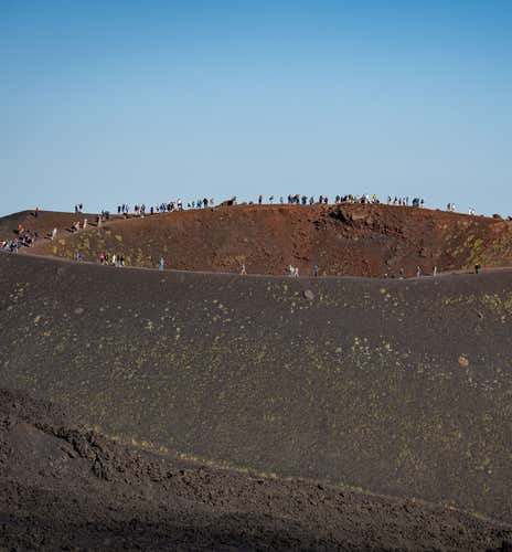 Dopo questo emozionante inizio, ci prenderemo un momento per godere appieno del paesaggio e della vista sulla baia di Catania. Poi, dopo una sosta in rifugio per il pranzo (esluso), procederemo lungo uno scenografico sentiero verso l'ultima tappa, il Piano Vetore. Percorreremo un sentiero che ci porterà a un punto panoramico e davanti a noi si dischiuderà il magnifico paesaggio della Valle dell'Etna illuminata dalla luce del tramonto.