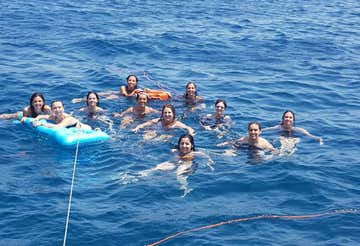 Una volta terminato l'imbarco di tutti i passeggeri salperemo alla volta dell'Area Marina Protetta di Capo Gallo - Isola delle Femmine. Sosteremo nel Golfo di Mondello per un tuffo, il primo di numerose soste bagno, in questo mare meraviglioso. A bordo sono disponibili maschere e pinne per praticare snorkeling.