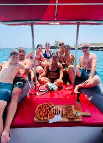 Nel corso della navigazione sono previste due soste bagno. A bordo verrà inoltre servito un aperitivo salentino accompagnato da un calice di prosecco (incluso) per brindare con la tua compagnia a questa esperienza!