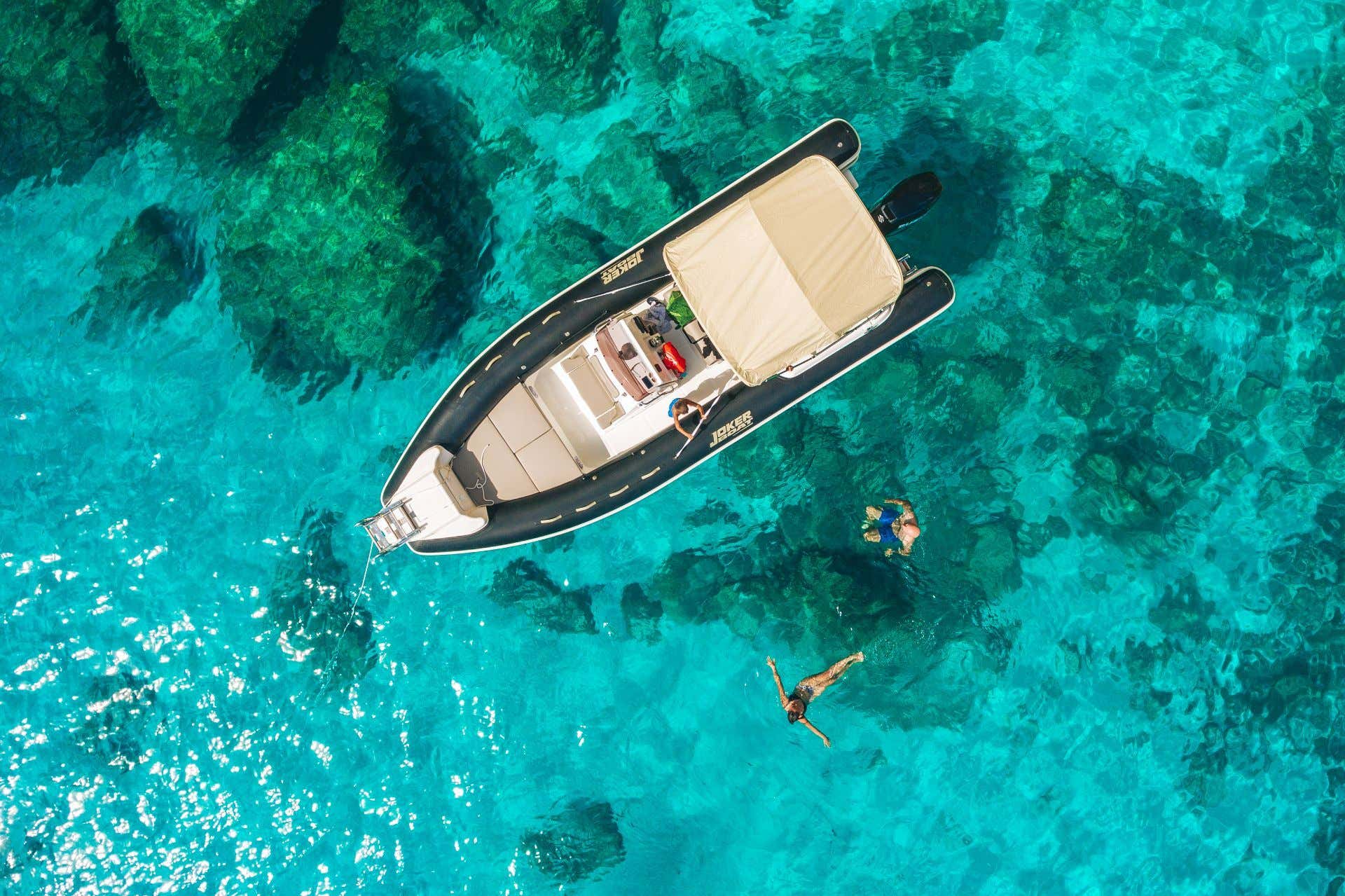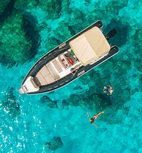 L'imbarcazione usata per il tour è uno spazioso gommone omologato per 18 persone, dotato di tendalino, scaletta, stereo, doccia e frigorifero.
