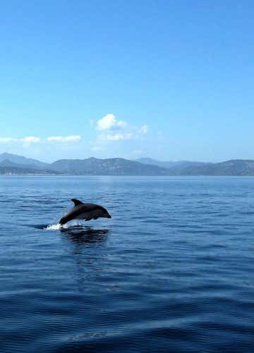 Inizieremo la navigazione a velocità ridotta per il dolphin watching: osserveremo i delfini che frequentano assiduamente queste acque, attirati dagli impianti di itticoltura. Con un po' di fortuna, potremo ammirare i loro salti ed evoluzioni a pochi metri da noi, mentre lo skipper ci racconterà curiosità e approfondimenti scientifici sulla specie. La sessione di osservazione durerà dai 30 ai 50 minuti, nel pieno rispetto degli animali.