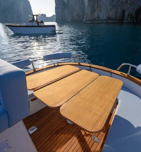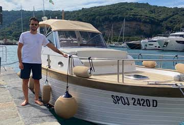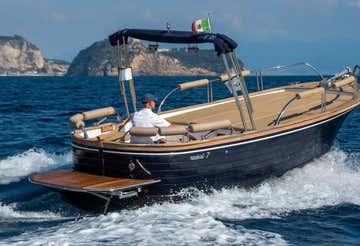 L'imbarcazione è un gozzo lungo 7,5 metri dotato di doppio prendisole, tendalino, doccetta, scaletta di risalita, impianto stereo e tutti i comfort per una piacevole navigazione. A bordo dell’imbarcazione non sono ammesse calzature, si rimane a piedi scalzi. I cani di piccola taglia sono ammessi a bordo.