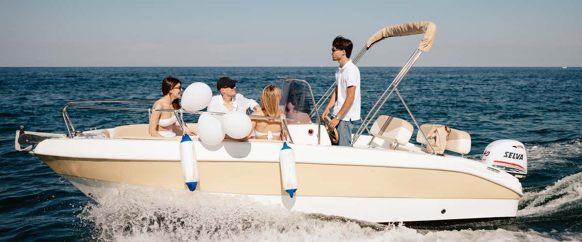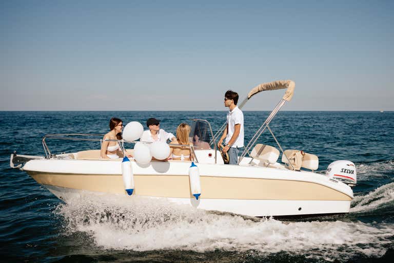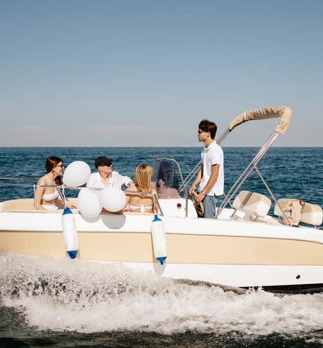 L'imbarcazione utilizzata è un motoscafo di 5,5 metri, dotato di tendalino, scaletta di risalita, cassa bluetooth e frigo. A bordo si sta senza calzature.