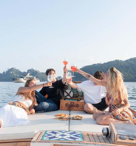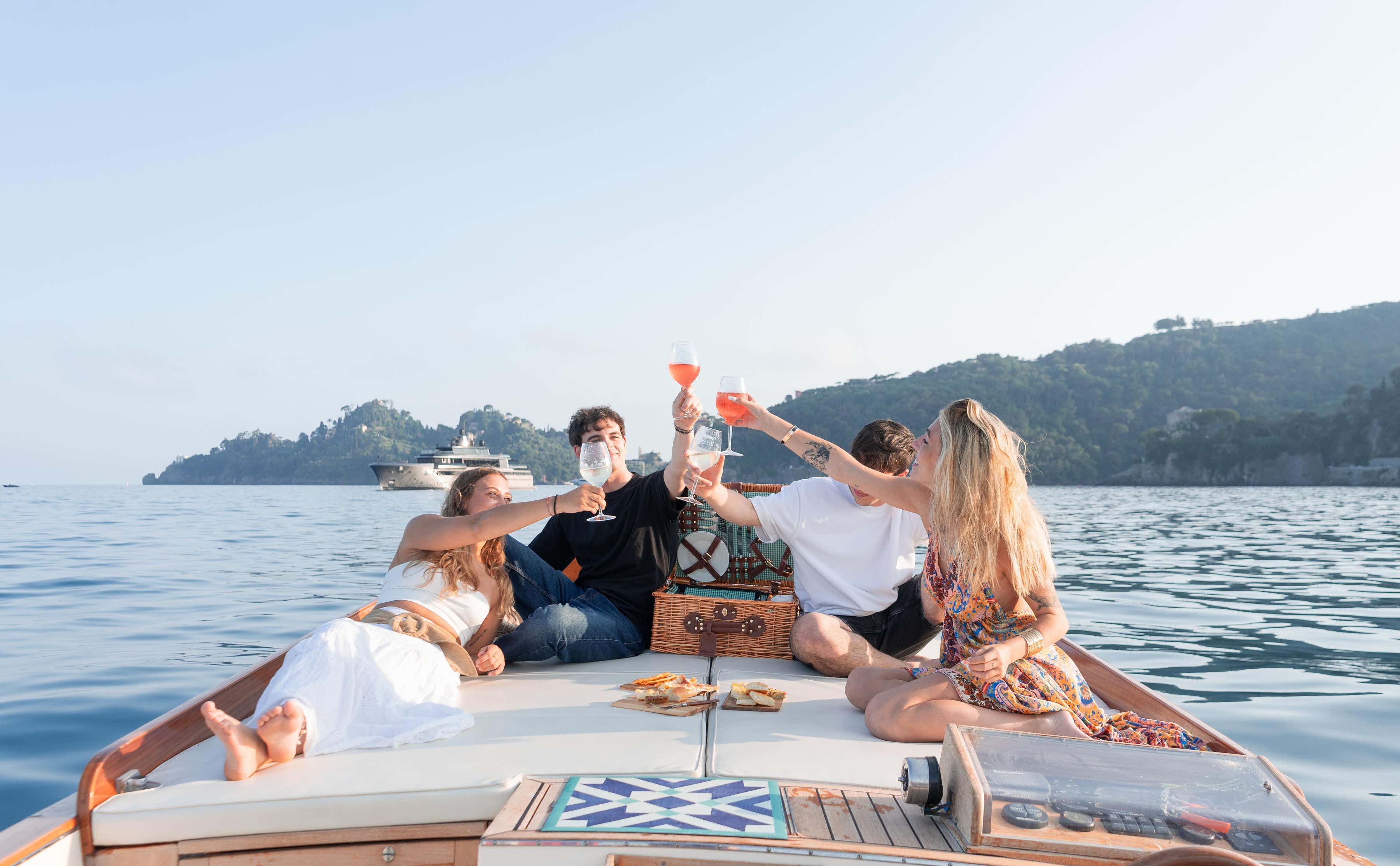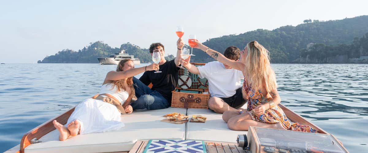 - Vivi l'ora dorata al largo di Portofino a bordo di un'elegante barca