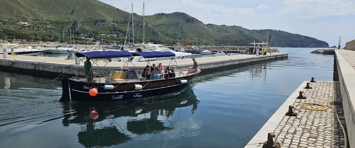 L'appuntamento è 15 minuti prima dell'orario selezionato nel punto di ritrovo a Terracina (LT) sul confine con San Felice Circeo (precisamente, il punto di ritrovo dista 11 km dal porto di Terracina e 7 km dal porto di San Felice Circeo). Il capitano vi accoglierà a bordo del gozzo in legno e salperete.
