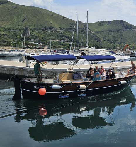 L'imbarcazione è il gozzo Don Raffaè di 8 metri dotato di tendalino. A bordo sono presenti opuscoli illustrativi in lingua inglese che descrivono le principali attrazioni visibili durante l'escursione.