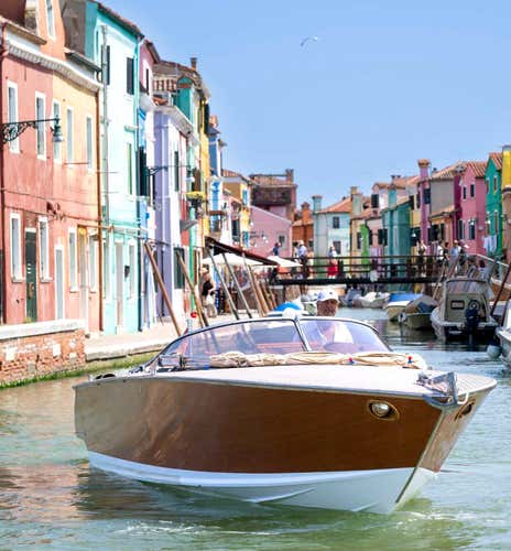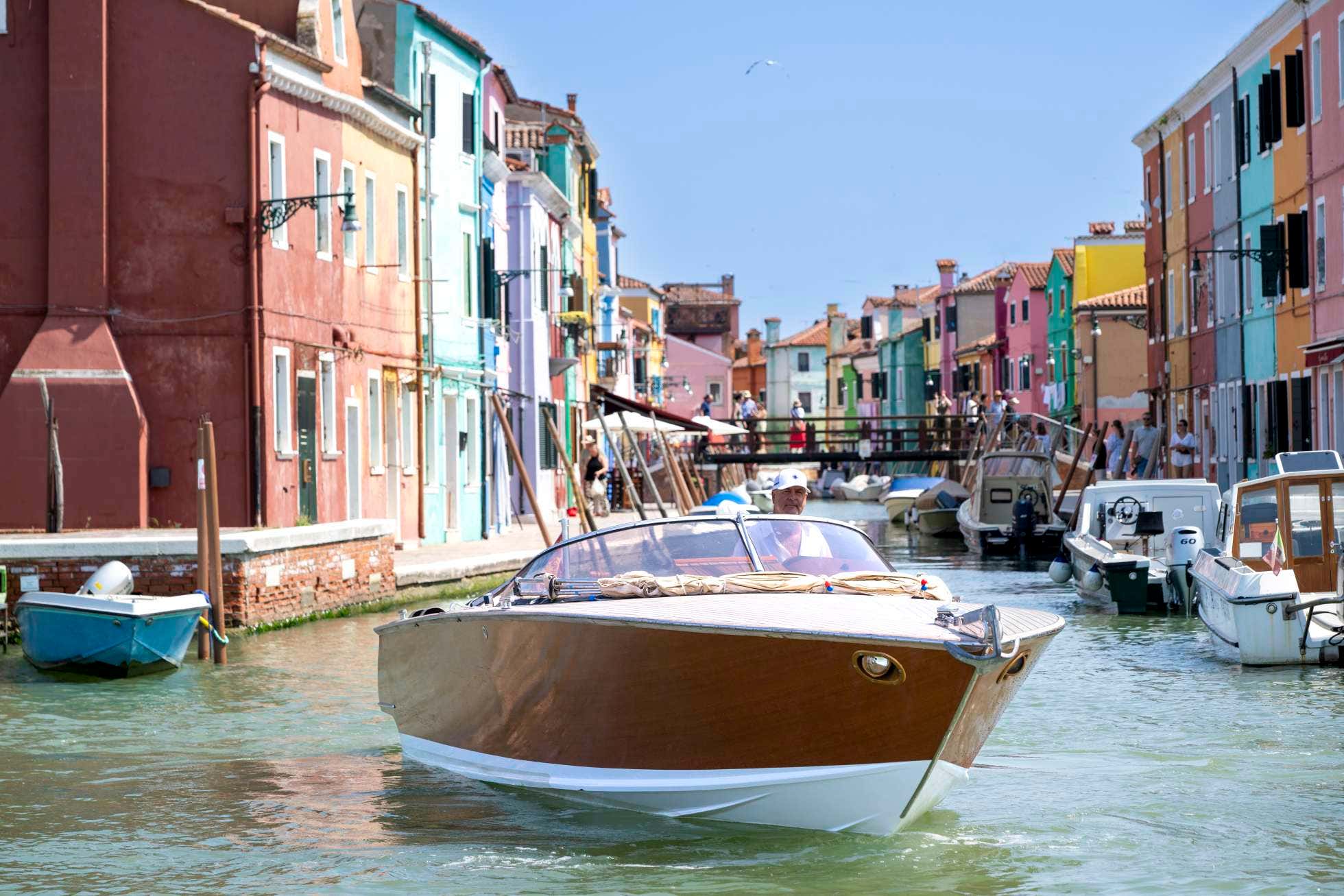 Succede a Murano, la prima tappa della tua escursione privata di 3 ore a bordo di un motoscafo vintage. Partendo da Venezia, proseguirai verso Burano e Torcello cullato dalle onde e da un drink di benvenuto.