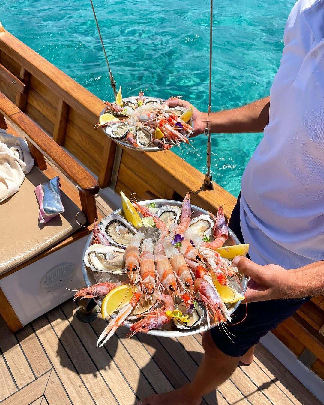 Per 8 ore sarai l'ospite d'onore di un equipaggio esperto pronto a deliziarti con un pranzo gourmet a base di pesce, ostriche e un open bar sempre attivo.