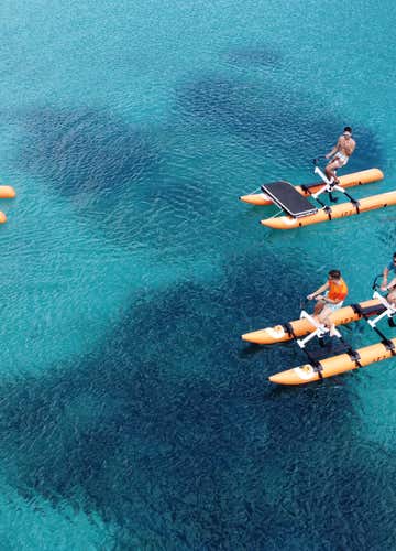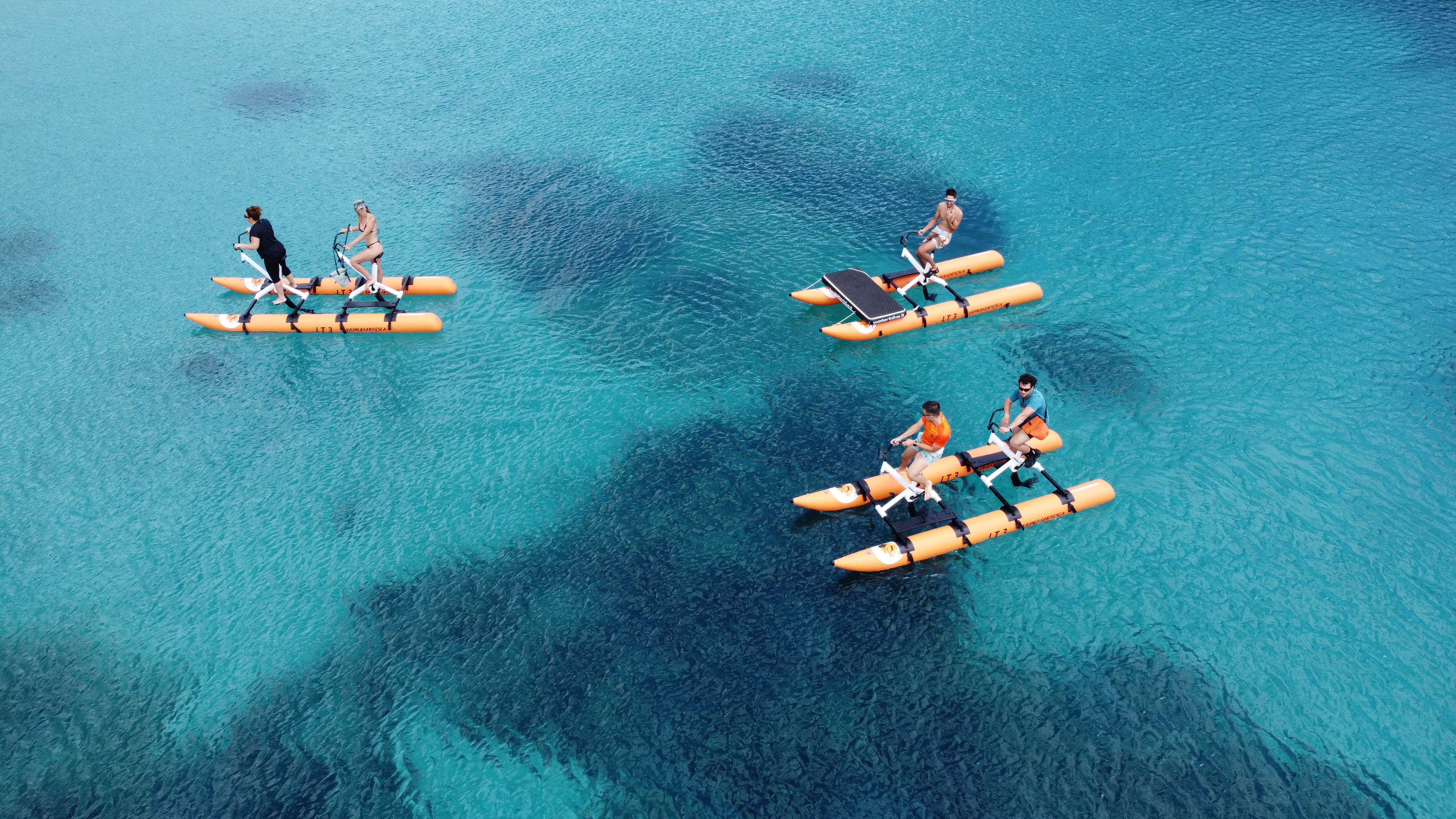 Radunati tutti i partecipanti, saliremo ognuno a bordo della propria waterbike doppia: una vera e propria bicicletta dalla struttura leggera, montata su galleggianti che permettono di "pedalare sull'acqua".