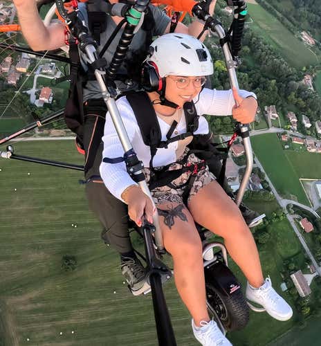 - Decolla dolcemente da terra grazie al motore e goditi il volo panoramico di 20 minuti