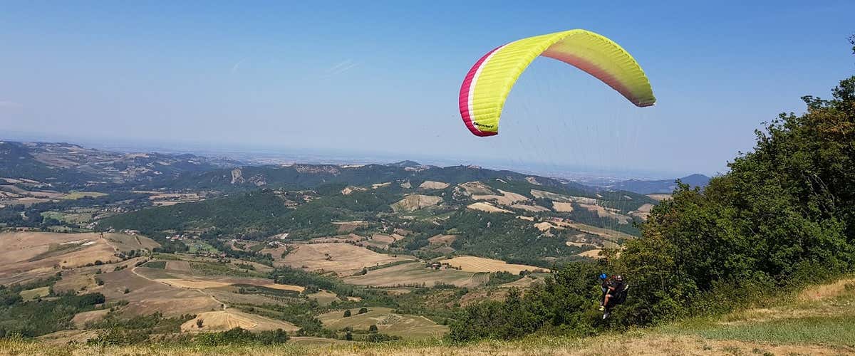 Decollare in parapendio è una vera e propria magia: bastano pochi passi in discesa, una leggera corsetta e, neanche il tempo di accorgertene, ti ritroverai sospeso nell'aria per iniziare una discesa lenta e panoramica verso terra, sostenuto dalle correnti ascensionali.