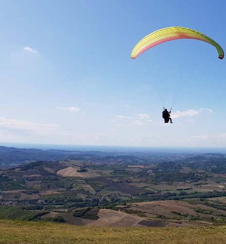 Con il volo in parapendio biposto a Brignano Frascata, in provincia di Alessandria, al confine tra Piemonte e Lombardia, proverai sensazioni uniche e verrai pervaso da un immenso senso di libertà mentre fluttui in aria sorvolando il paesaggio collinare della Val Curone.