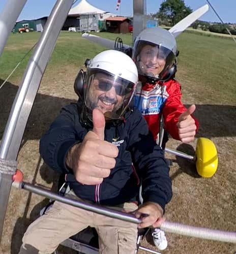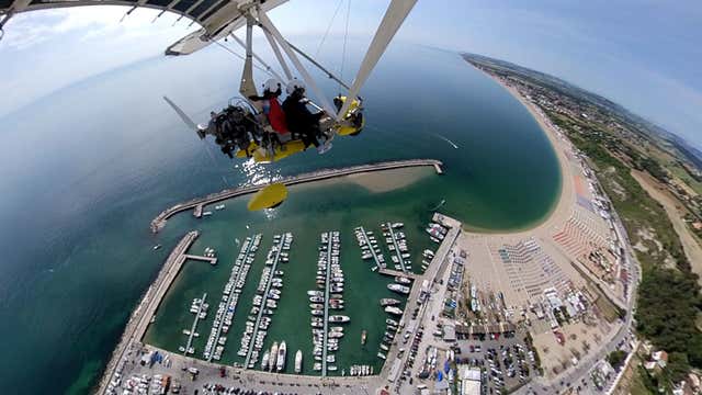 - Decolla da Recanati a bordo di un deltaplano a motore biposto