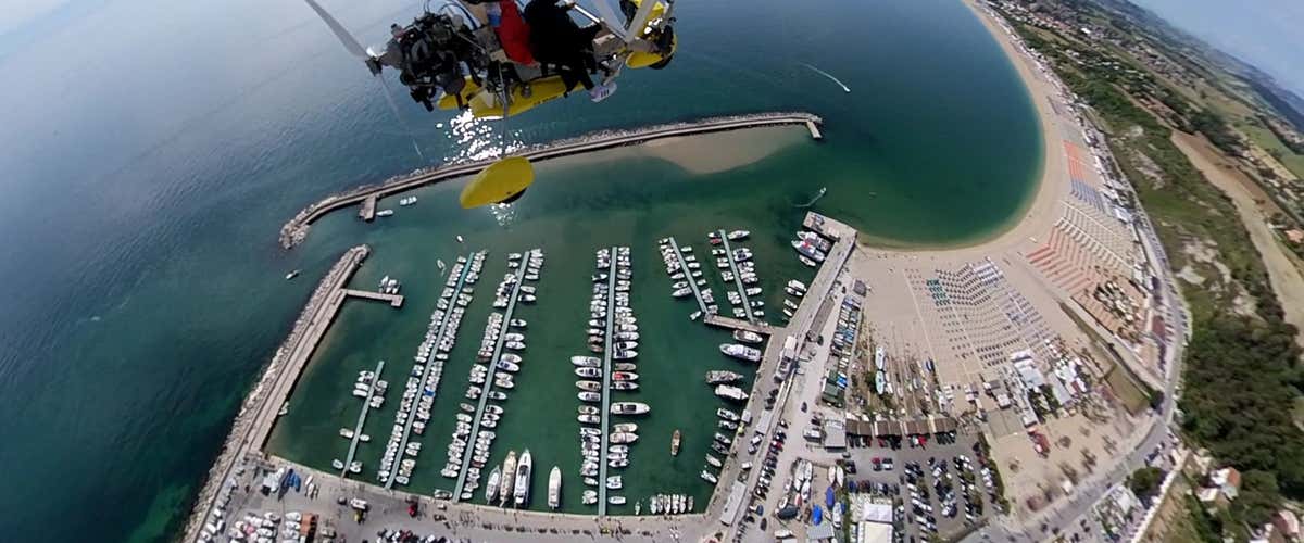 Una volta in volo, godrai di una vista spettacolare sulla Riviera del Conero. Ammirerai il maestoso Monte Conero e le località di Numana, Marcelli e Sirolo che si estendono lungo la costa. Potrai avvistare dall'alto la Basilica di Loreto, a poca distanza dalla base, e la famosa spiaggia delle Due Sorelle.
