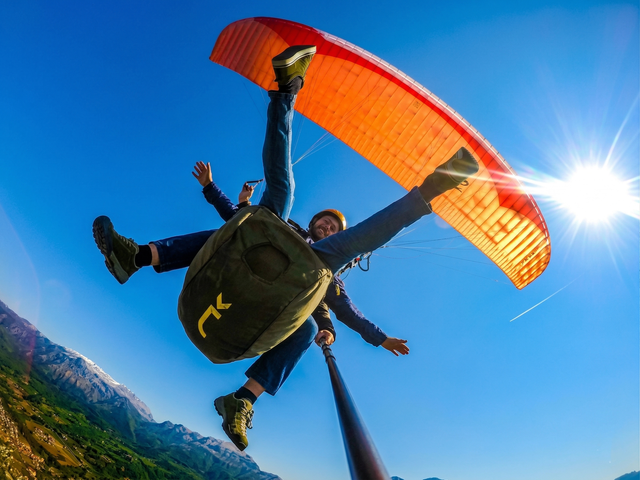 Dopo di che, indosserai l'imbragatura e, saldamente attaccato al pilota, ti preparerai al decollo. Ci vorranno pochi passi in discesa, una leggera corsetta e in un attimo ti ritroverai sospeso nell'aria! Da quel momento il parapendio inizierà la sua discesa sostenuto dalle correnti ascensionali.