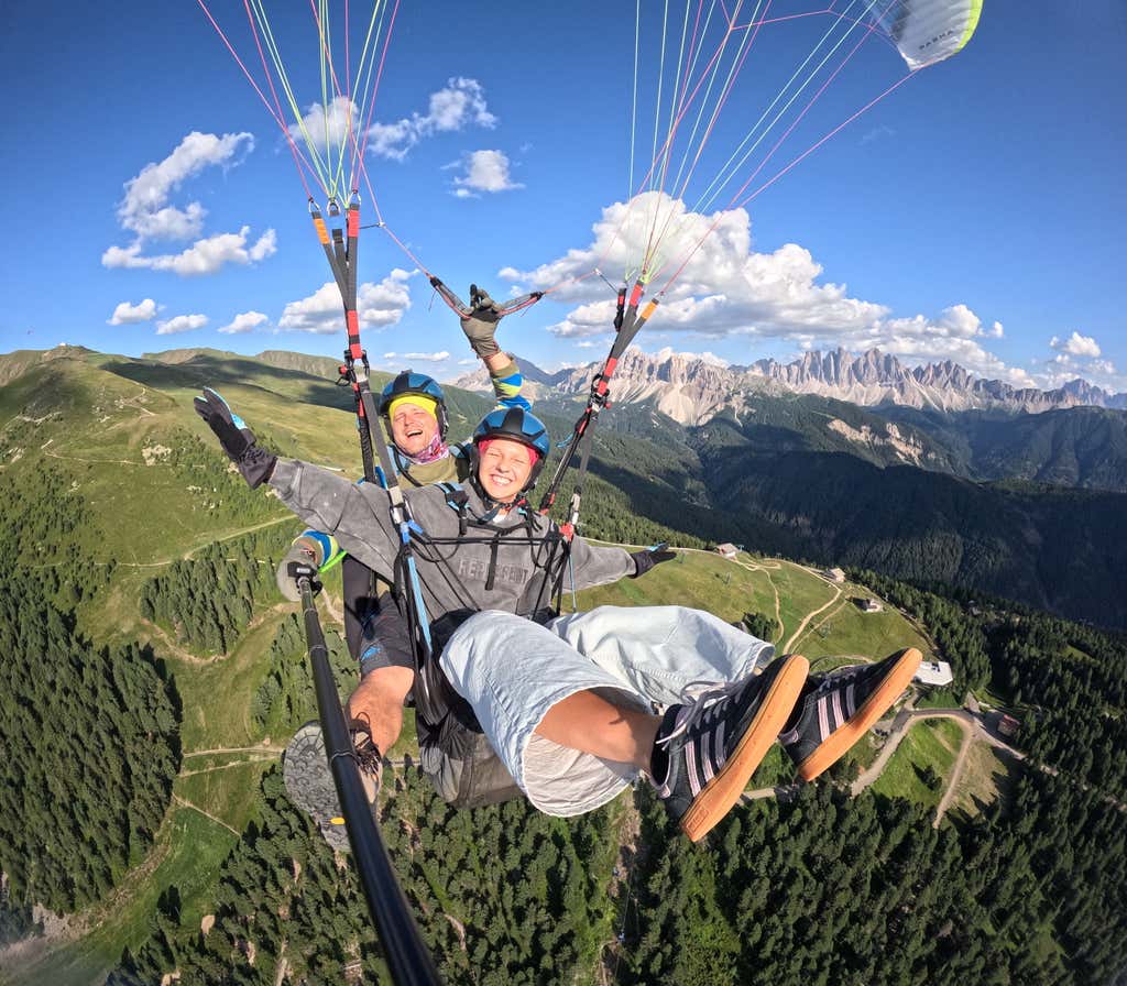 Sulla Plose, sopra Bressanone, quel momento arriva in un attimo: due passi, un soffio di vento… e ti ritrovi a volare in parapendio tra le Dolomiti. Per circa 20 minuti sarai sospeso tra cime e vallate, insieme a un pilota professionista che ti farà scoprire il lato più libero - e sincero - della montagna.