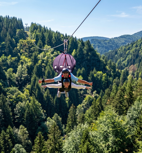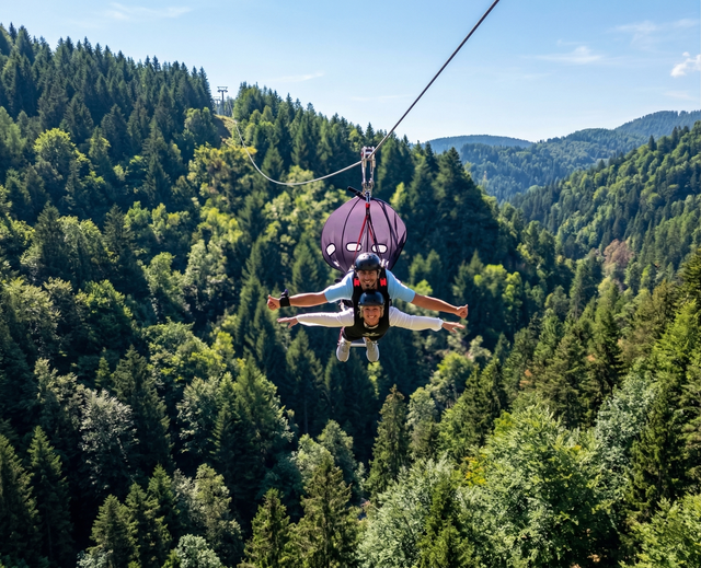 - Lasciati scorrere sul cavo d'acciaio lungo 2.225 m e raggiungi una velocità massima di 172 km/h.