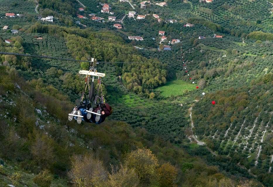 Percorrerai gli oltre 2 km del cavo d'acciaio che collega due alture a strapiombo sulla verdeggiante natura dei Monti Lepini, in provincia di Latina, e il brivido della velocità e dell'altezza ti farà urlare di gioia!