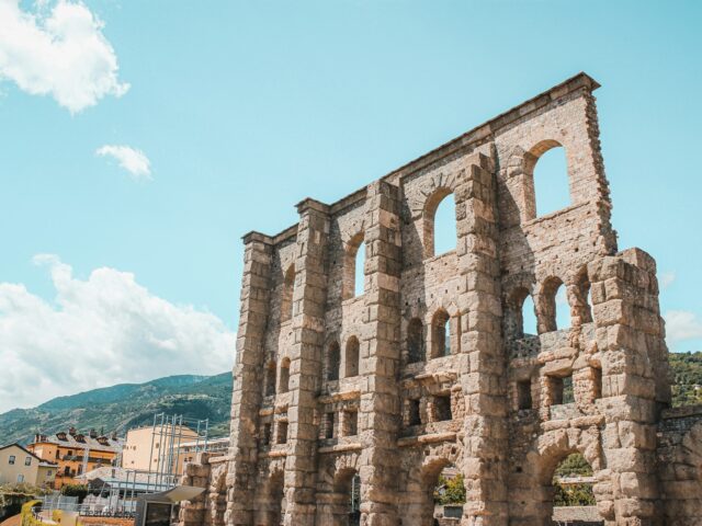 - Teatro Romano. Se Aosta fosse uno spettacolo teatrale, il Teatro Romano sarebbe il suo palcoscenico. La maestosa facciata ad archi è uno dei resti meglio conservati dell’epoca romana nelle Alpi.