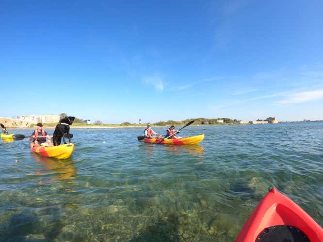 Sali a bordo del kayak e pagaia in compagnia degli amici. Seguirai un briefing iniziale per capire come usare le pagaie e muoverti con il kayak. Dopodiché uscirai dal porto diretto verso il Castello Alfonsino. Pagaierai circondato dal bel paesaggio marino fino alla spiaggia di Materdomini. Ti aspettiamo!