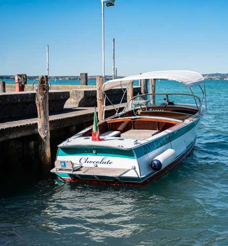 The boat used is a 7. 80-metre wooden motorboat, a historical model from a shipyard in Monte Isola, equipped with an awning, stereo and refrigerator.