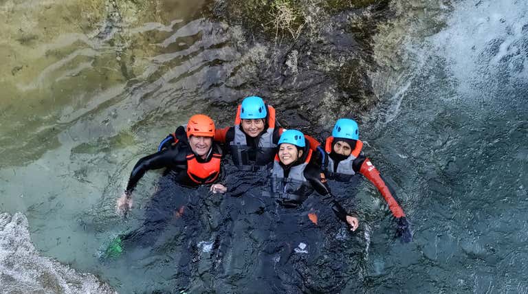 We will walk among shallow puddles, rocks shaped by time, and natural slides, all of which can be navigated safely. Along the way we will also enjoy some (optional) dives, the highest of which will measure 4 metres. The water will never be too deep, making the route suitable for everyone.