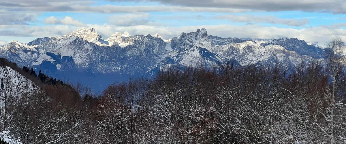 As we climb in altitude, the panorama will open up over the Valbelluna and the Vallata Trevigiana , and in the distance we will be able to make out the mountain complexes of the Vette Feltrine and the Pale di San Martino.