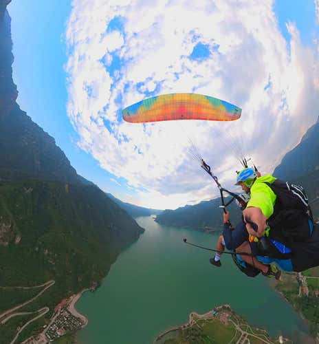 Experience the thrill of an aerobatic flight on a tandem paraglider gliding over the shores of Lake Idro, between Trentino and Lombardy. Together with an experienced pilot, you will try your hand at aerobatics and vaulting to admire the landscape from a completely new perspective.