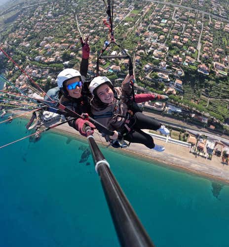Once you have your gear on, we will be close to take-off: you will be securely harnessed to me and together we will take a short run-up to take flight! Carried by the updrafts, we will admire the northern coast of Sicily and the Tyrrhenian Sea from a unique perspective. In the meantime, I will perform aerobatics and evolutions in the air; and if you want to increase the thrill of the experience, you can try asking me to manoeuvre the paraglider yourself!