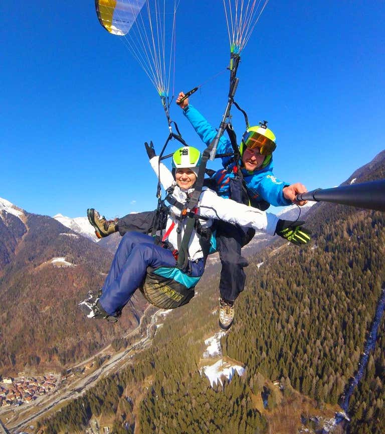 An acrobatic paragliding flight at Pinzolo is much more than an 'aerial stroll': in tandem with an expert instructor, you will take off from an altitude of over 2000 m and perform adrenalin-pumping manoeuvres in the skies.