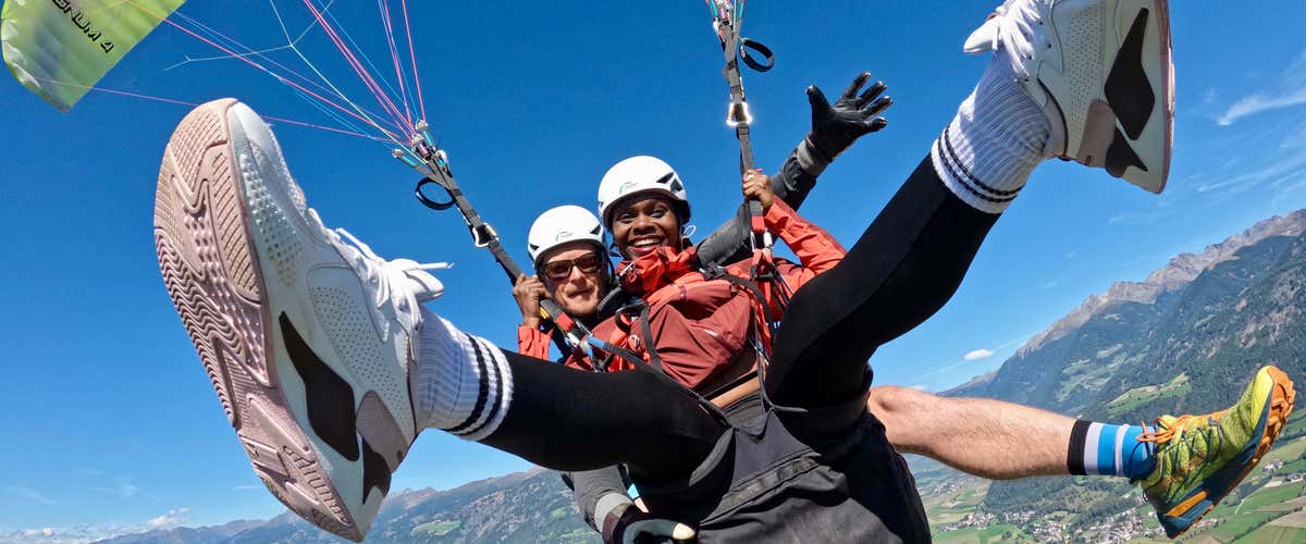 At Plan de Corones, in the heart of the Dolomites, an acrobatic paragliding flight awaits you with spirals, wing-overs and manoeuvres that will make you scream. .. but with joy. In tandem with a professional pilot, you will experience 10-15 minutes of pure adrenaline in total safety.