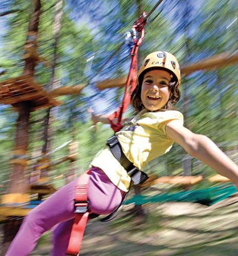 The young adventurers will then be accompanied to the fuchsia course, which has been constructed on a 'child's scale': the course is positioned at a height of 1.5 m, allowing the parent or adult in charge to follow the experience from the ground. The course consists of several obstacles, including two 65 m long zip line passages , for guaranteed fun!