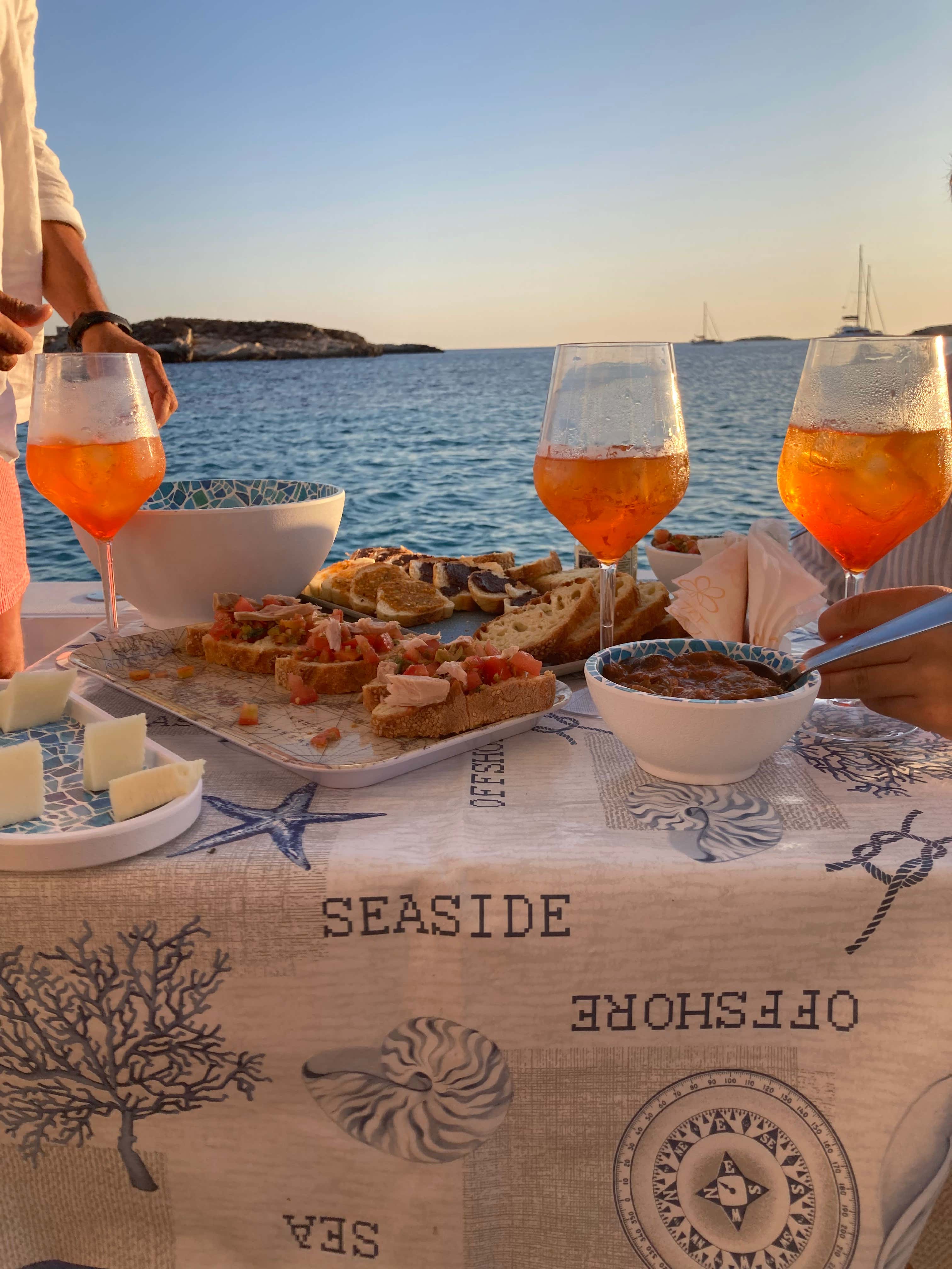 Boat aperitif at sunset in Favignana
