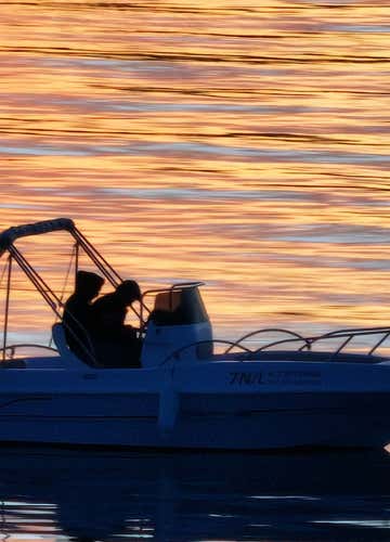 Theboat is a 5.7-metre-long motor boat equipped with a canopy, sundeck, cushions and a climbing ladder. You remain barefoot on board. Dogs are allowed on board.