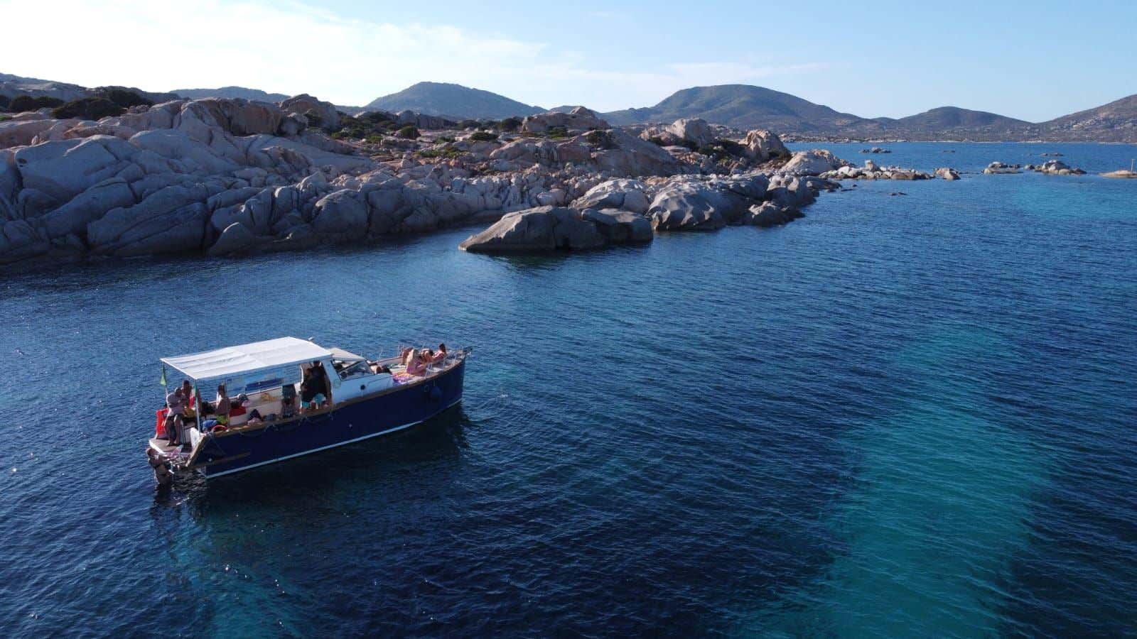 The boat intended for the tour is 10 metres long and is a modern motor boat with a wooden hull built in 2019. At the stern, it is equipped with a large awning and sofas in which to sit and enjoy the excursion in comfort, while at the bow it is equipped with a sunbathing couch, a small beach for diving and a freshwater shower. The boat is completed by a galley, a cabin and a toilet. A 3-seater kayak and snorkelling masks are available on board.