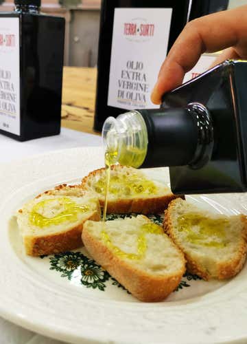 Afterwards, we will take a seat in the tasting room where we will enjoy a tasting of Terra Surti extra virgin olive oil accompanied by Sicilian bread. Finally, it will be time for brunch, consisting of an appetiser of olives, cheese, sausage and bruschetta with typical pate, followed by a main course (as well as the typical seasoned pizzolo ) and a dessert of ricotta and honey. All accompanied by local white or red wine.